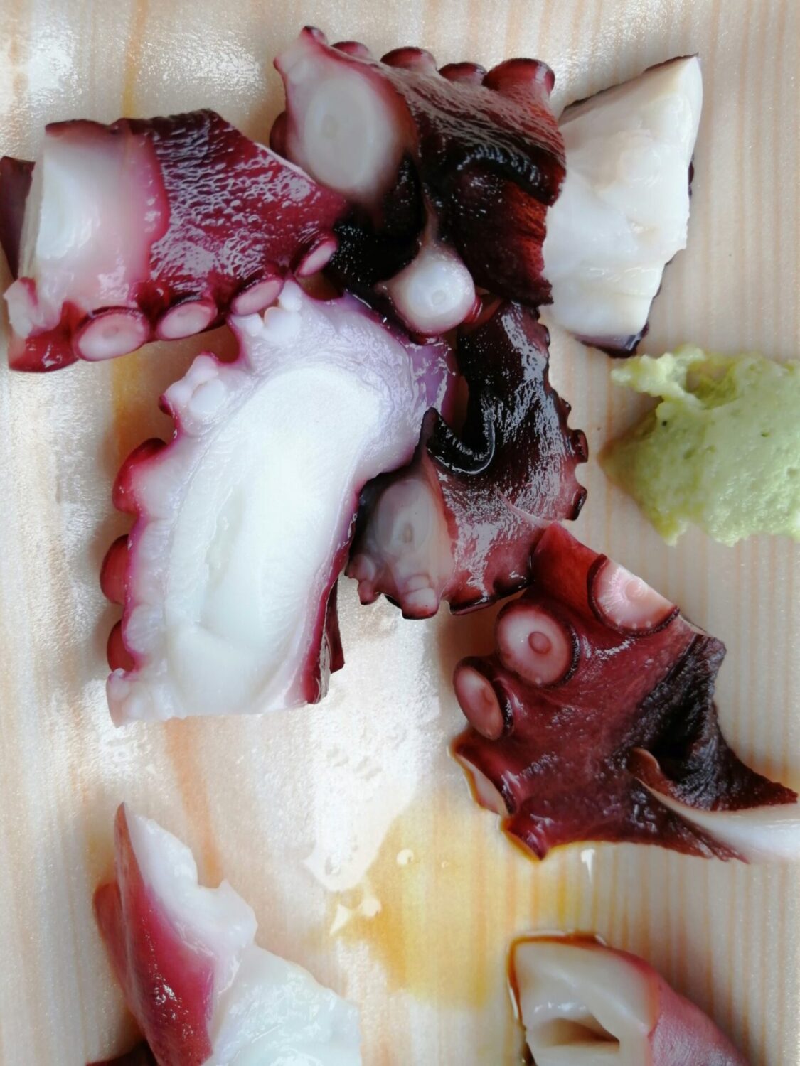 ただ、最近では生の刺身も出回りますね。これは冷凍のものを半解凍にしてスライスします。こうすることで薄切りにすることが出来ます。なぜ生のタコを薄切りにするかというと、噛みきりやすくするためです。