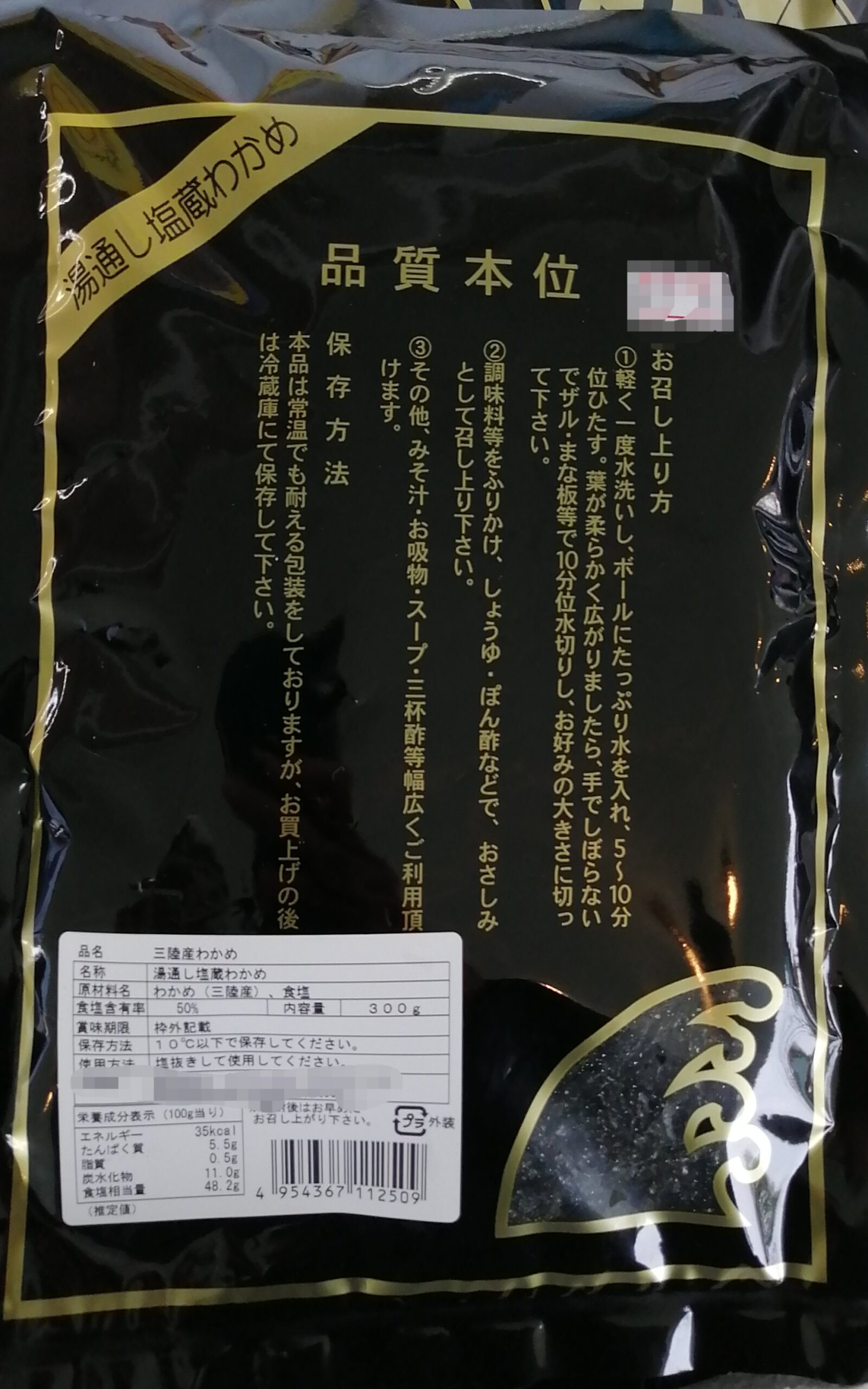 「湯通し塩蔵わかめ」と表示されています。