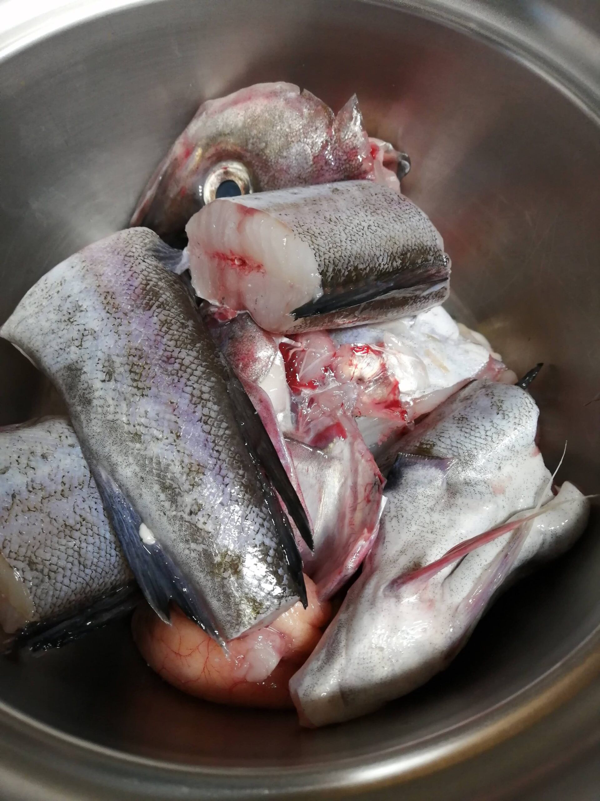 - スケトウダラのお腹を捌いて内臓を出します。頭、白子やたらこも入れると美味しいです♪